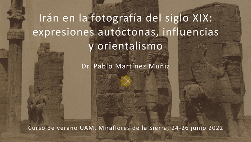 El 26 de junio de 2022 presenté la conferencia titulada "Irán en la fotografía del siglo XIX: expresiones autóctonas, influencias y orientalismo", en el Curso de verano de la Universidad Autónoma de Madrid, "El legado cultural de Persia a través de la historia: símbolos, relatos y encuentros".