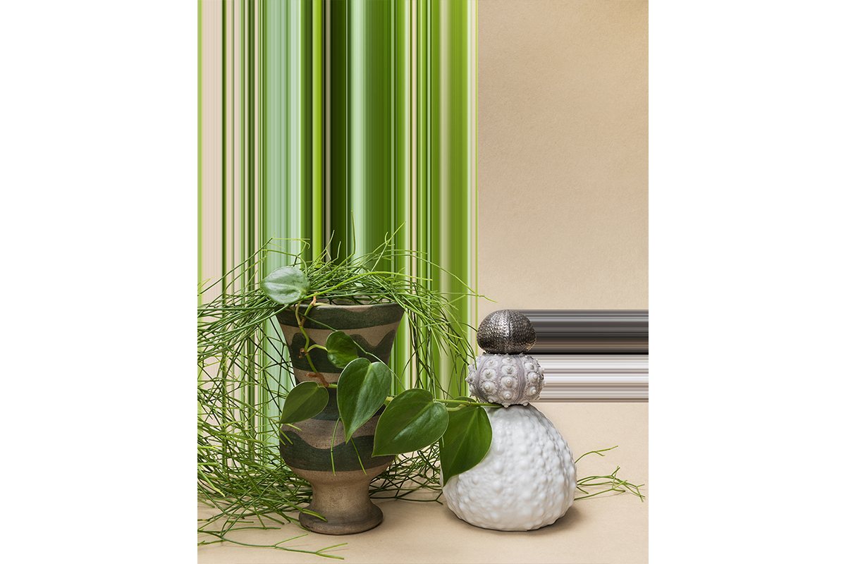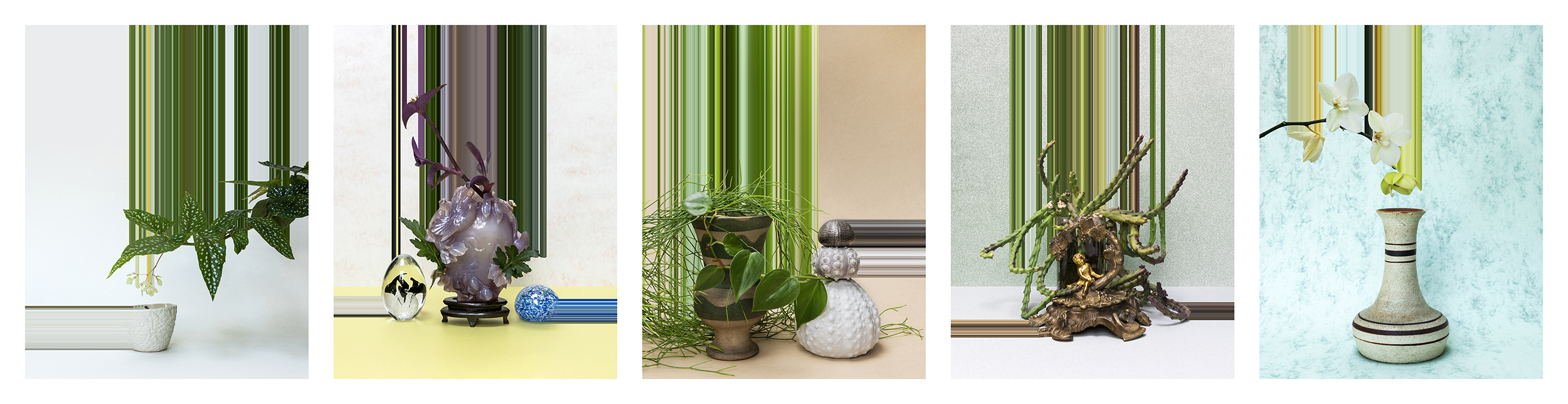 Bodegones fotográficos realizados durante el periodo de confinamiento del Covid-19. Se propone una reflexión en torno a la idea del paraíso vegetal mediante la representación de una metamorfosis digital de diferentes especies de plantas y flores presentes en casa, en una armónica cohabitación con diversos objetos decorativos.
