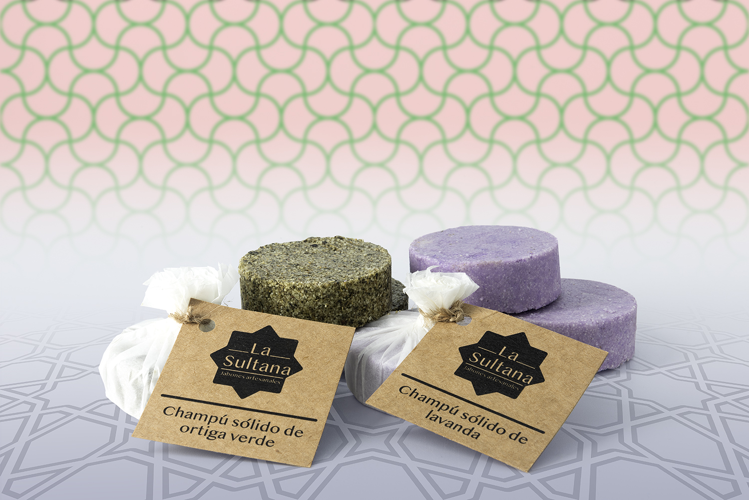 Carlos es el responsable de elaborar los jabones siguiendo una técnica cien por cien artesanal en la cual el jabón, una vez ha iniciado el proceso de saponización y adquirido la traza, es depositado en unos moldes en los que permanece entre veinticuatro y cuarenta y ocho horas antes de ser cortado es pastillas. Posteriormente el jabón ha de reposar un mínimo de un mes antes de poder ser utilizado. Pablo se encarga de la parte creativa de La Sultana. Jabones artesanales: fotografía, identidad creativa, diseño de packaging y diseño web. Se ha inspirado en diversos ornamentos islámicos presentes en algunos de los monumentos islámicos más importantes: la Alhambra de Granada, la mezquita de los Omeyas de Damasco, el palacio de Topkapi de Estambul o la mezquita de Córdoba. Esta revisión del ornamento islámico se materializa en una imagen de marca que compagina un gusto por la tradición y la modernidad.