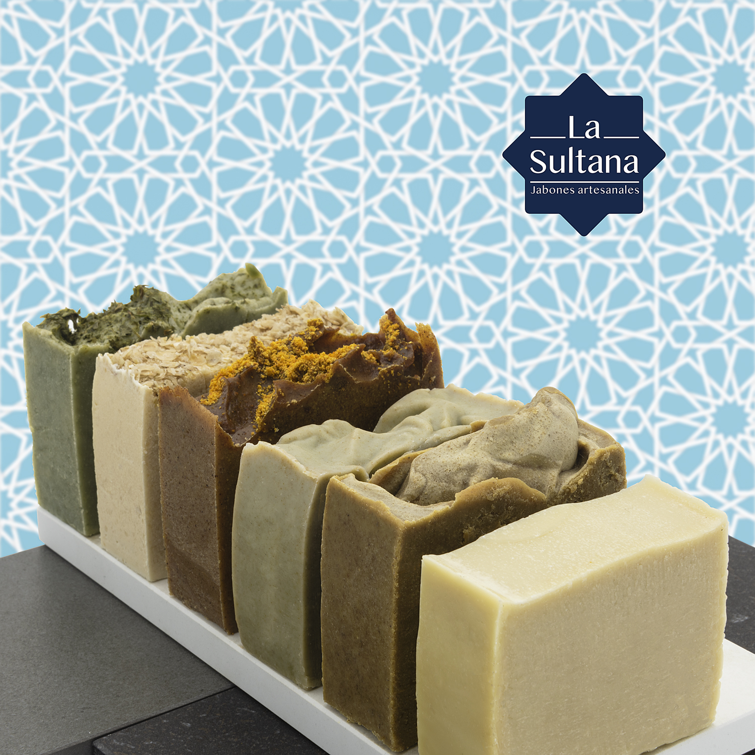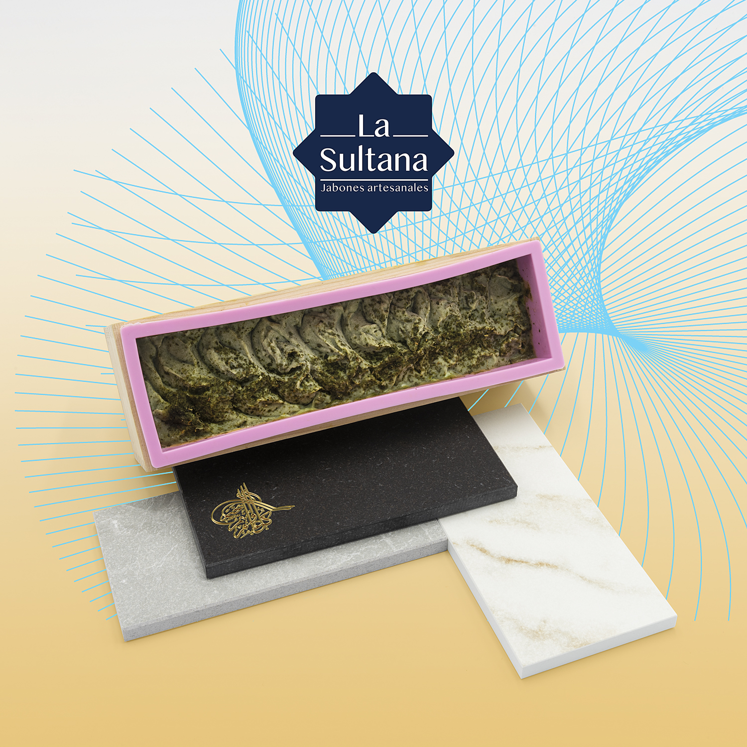 Carlos es el responsable de elaborar los jabones siguiendo una técnica cien por cien artesanal en la cual el jabón, una vez ha iniciado el proceso de saponización y adquirido la traza, es depositado en unos moldes en los que permanece entre veinticuatro y cuarenta y ocho horas antes de ser cortado es pastillas. Posteriormente el jabón ha de reposar un mínimo de un mes antes de poder ser utilizado. Pablo se encarga de la parte creativa de La Sultana. Jabones artesanales: fotografía, identidad creativa, diseño de packaging y diseño web. Se ha inspirado en diversos ornamentos islámicos presentes en algunos de los monumentos islámicos más importantes: la Alhambra de Granada, la mezquita de los Omeyas de Damasco, el palacio de Topkapi de Estambul o la mezquita de Córdoba. Esta revisión del ornamento islámico se materializa en una imagen de marca que compagina un gusto por la tradición y la modernidad.