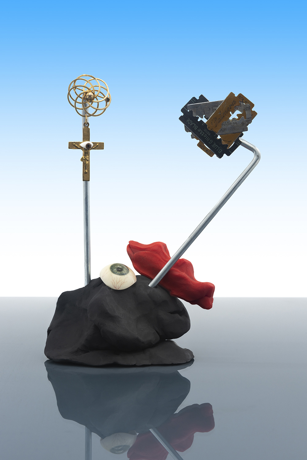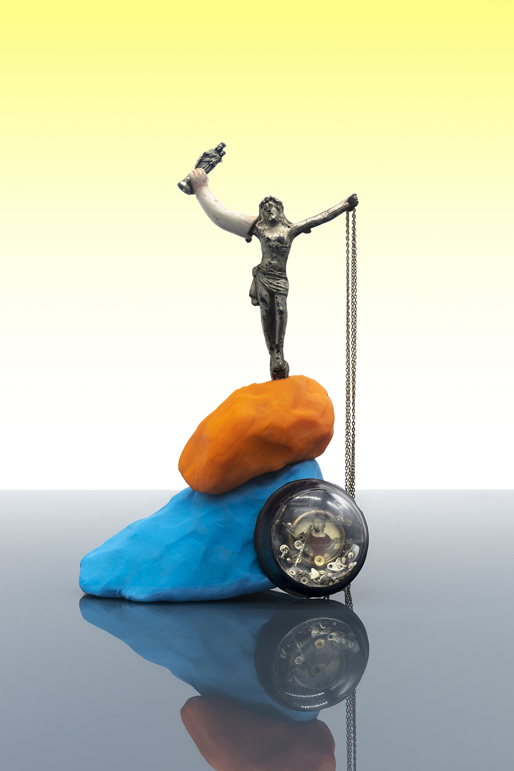 Por otro lado, el cristianismo, presente de una manera iconográfica en la nueva colección de joyas del Taller de Feeas a través de la apropiación de antiguos rosarios, cruces, relicarios, pequeñas pilas baptismales e imágenes de la Virgen y de Cristo, ha desarrollado a lo largo de la historia una compleja escatología acerca del más allá y de la proximidad de la muerte. Las ideas de la culpa, el sacrificio, la redención y el perdón cohabitan con una teología que niega, frecuentemente, los placeres de la vida, tal y como les ocurrieron a Adán y Eva al morder la manzana prohibida.