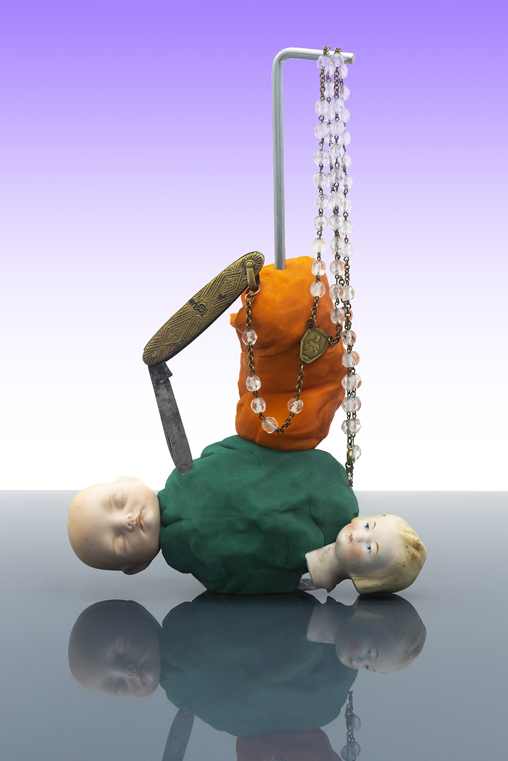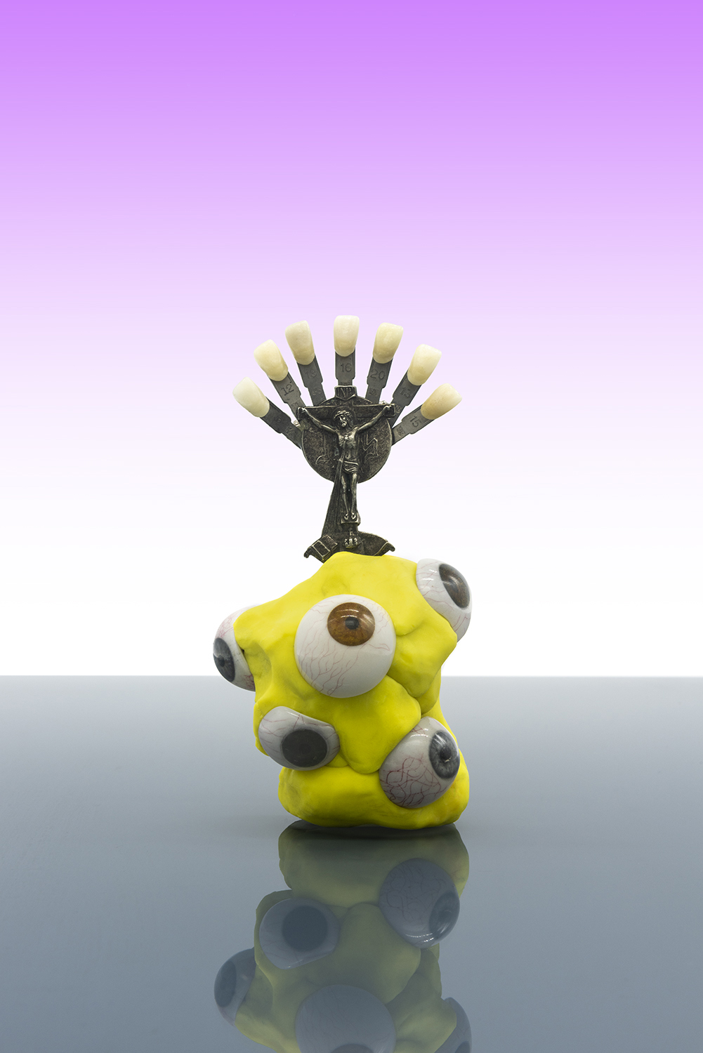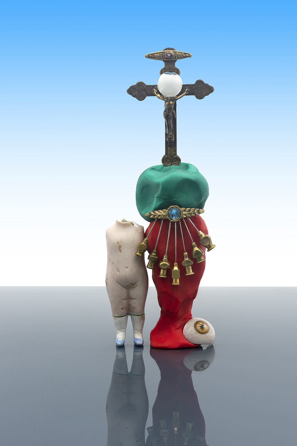 Las joyas de la nueva colección del Taller de Feeas utilizan elementos iconográficos del cristianismo, junto a antiguas prótesis oculares, fragmentos de muñecas de porcelana y vetustos objetos diversos rescatados de rastros y de anticuarios. Las fotografías realizadas han pretendido construir una sucesión de personajes cimentados a partir de plastilina de muy diversos colores, un divertido objeto que irremediablemente nos recuerda la infancia y la inocencia del despertar de la vida, pero que además posee unas cualidades plásticas y estéticas apropiadas para la construcción de grotescos personajes que bailan a la vida, se miran ante el espejo de la muerte con una gran sonrisa y celebran su paso por la vida.