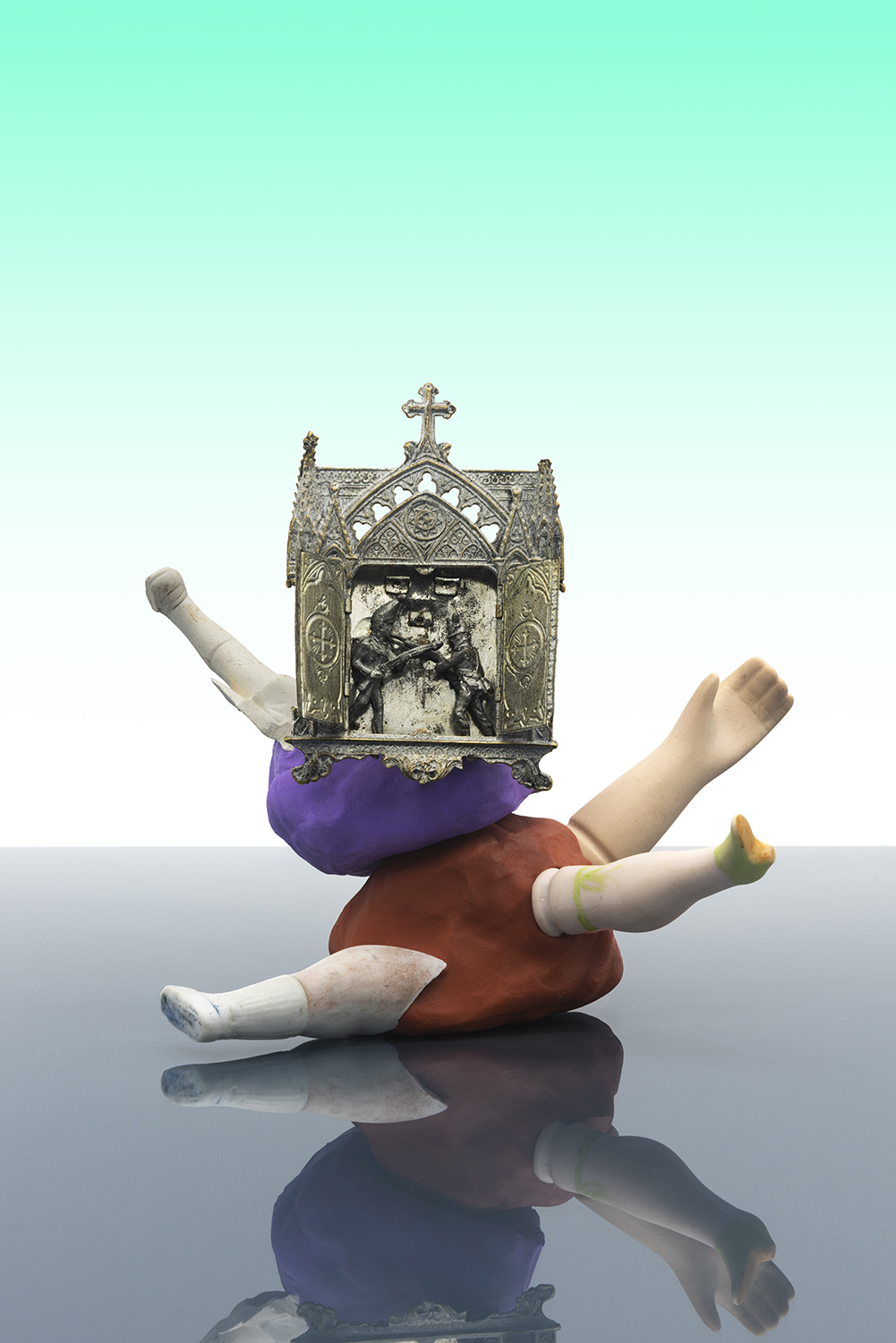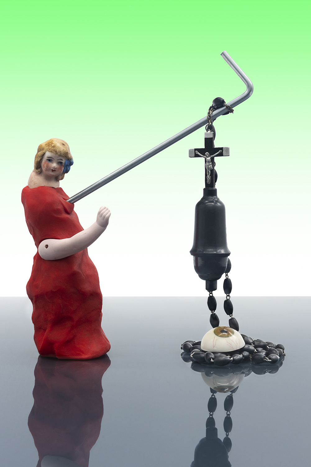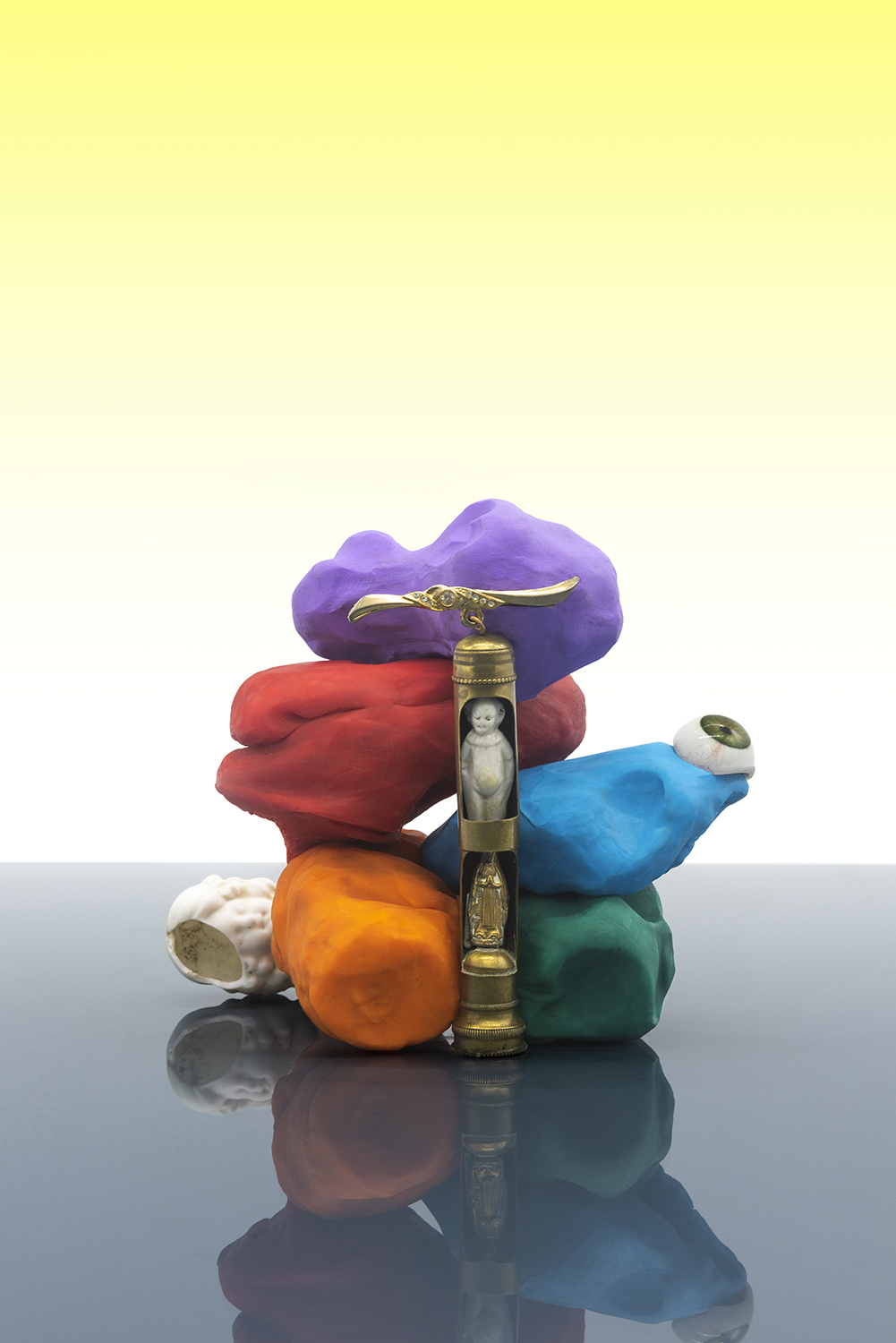 Las joyas de la nueva colección del Taller de Feeas utilizan elementos iconográficos del cristianismo, junto a antiguas prótesis oculares, fragmentos de muñecas de porcelana y vetustos objetos diversos rescatados de rastros y de anticuarios. Las fotografías realizadas han pretendido construir una sucesión de personajes cimentados a partir de plastilina de muy diversos colores, un divertido objeto que irremediablemente nos recuerda la infancia y la inocencia del despertar de la vida, pero que además posee unas cualidades plásticas y estéticas apropiadas para la construcción de grotescos personajes que bailan a la vida, se miran ante el espejo de la muerte con una gran sonrisa y celebran su paso por la vida.