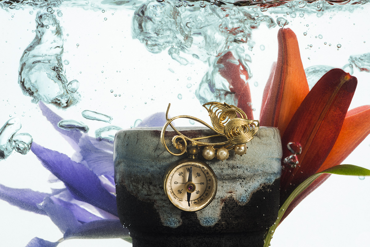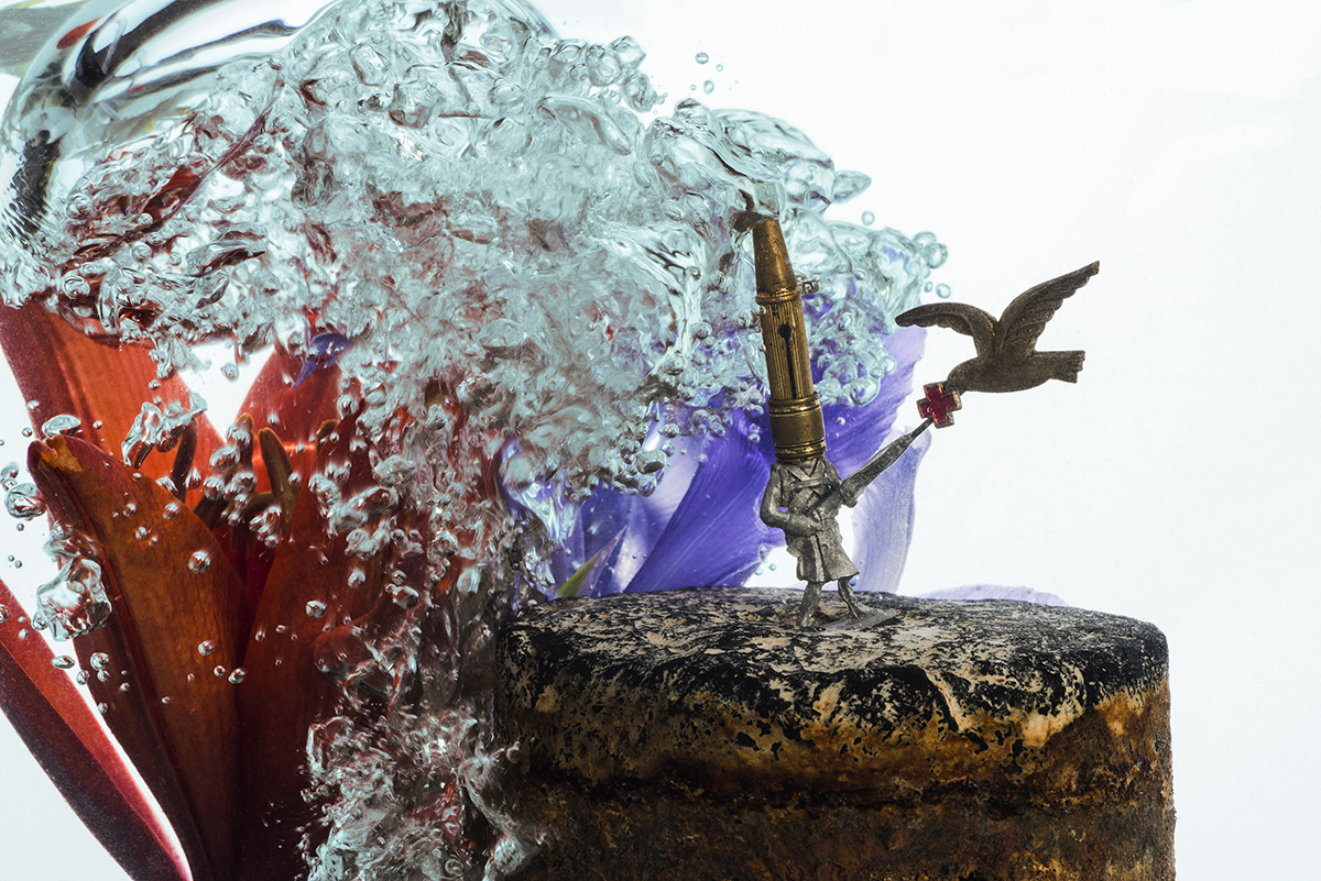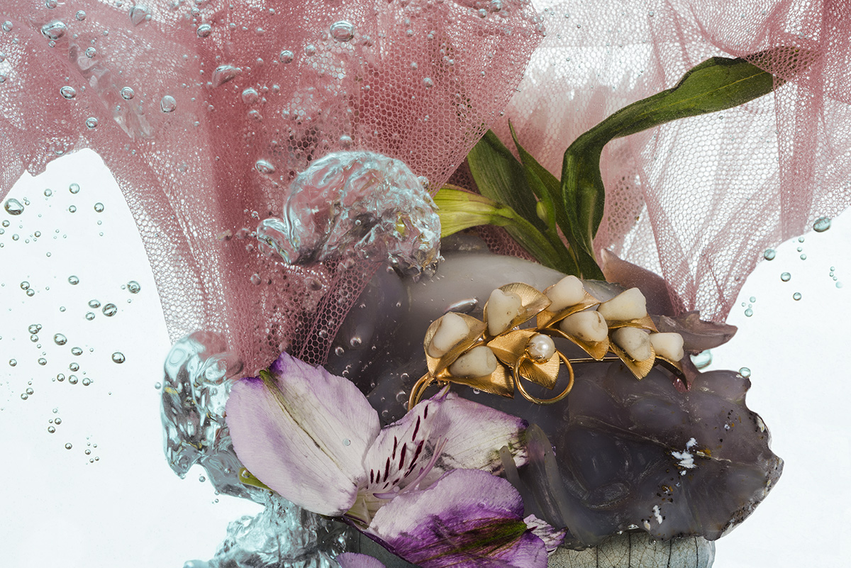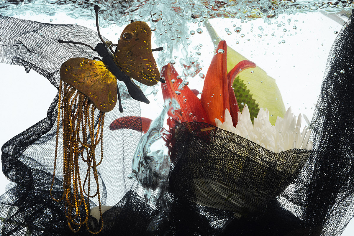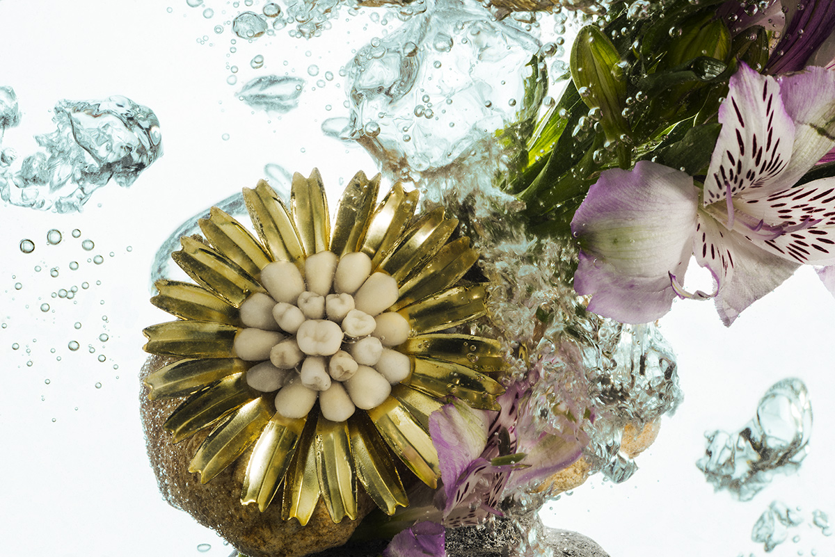 La serie fotográfica Mundo Flotante nos sumerge en un delicado y vaporoso escenario en el que las japonaiseries de flores cambiantes se mimetizan con las piezas de carácter preindustrial del Taller de Feeas para subrayar la transitoriedad del mundo natural y de la vida. Nos muestra que nuestra existencia no es más que un montón de espuma, una burbuja, un espejismo, o tal vez un sueño o un espectáculo mágico…